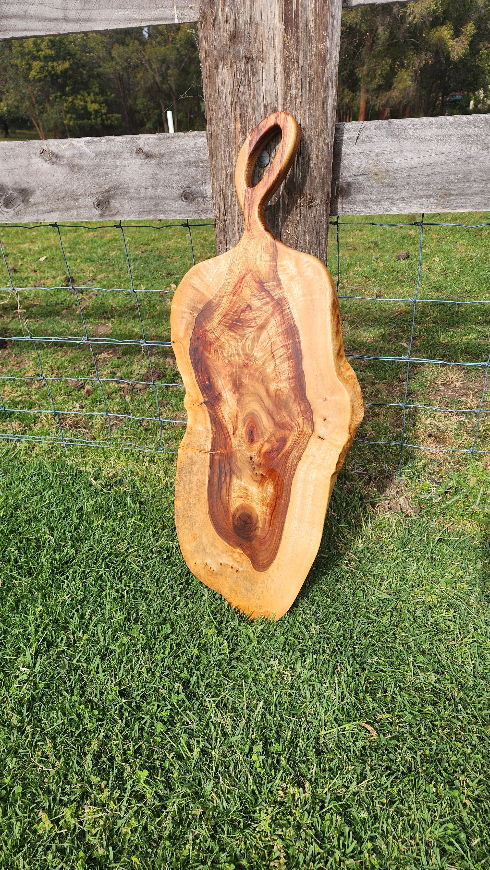 Camphor Laurel is known for its warm tones, rich grain patterns, and striking natural figure—features that are even more impressive in person than any photo can capture. This board brings all of that beauty forward, offering a stunning centerpiece for entertaining, grazing tables, and special occasions.
