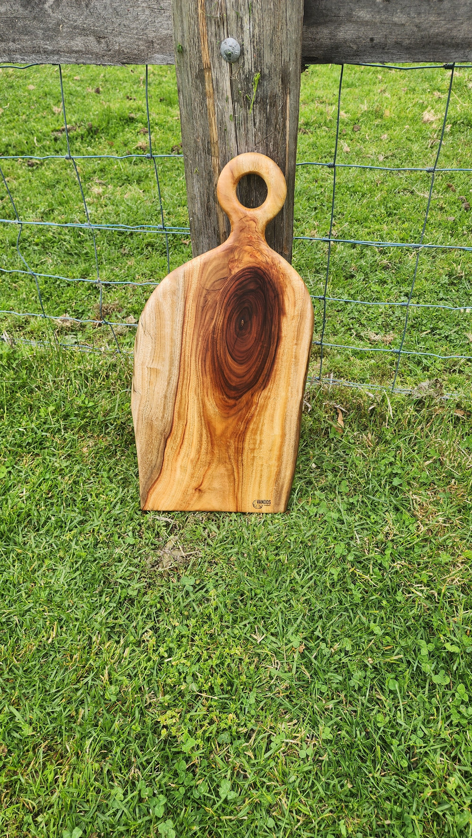 Camphor Laurel is truly one of nature’s standout timbers — rich, warm tones, beautiful grain patterns, and that subtle, refreshing scent unique to this species. This handcrafted board embraces all of those features with a simple, elegant design and a natural-edge handle that adds character without taking away from the timber’s beauty.