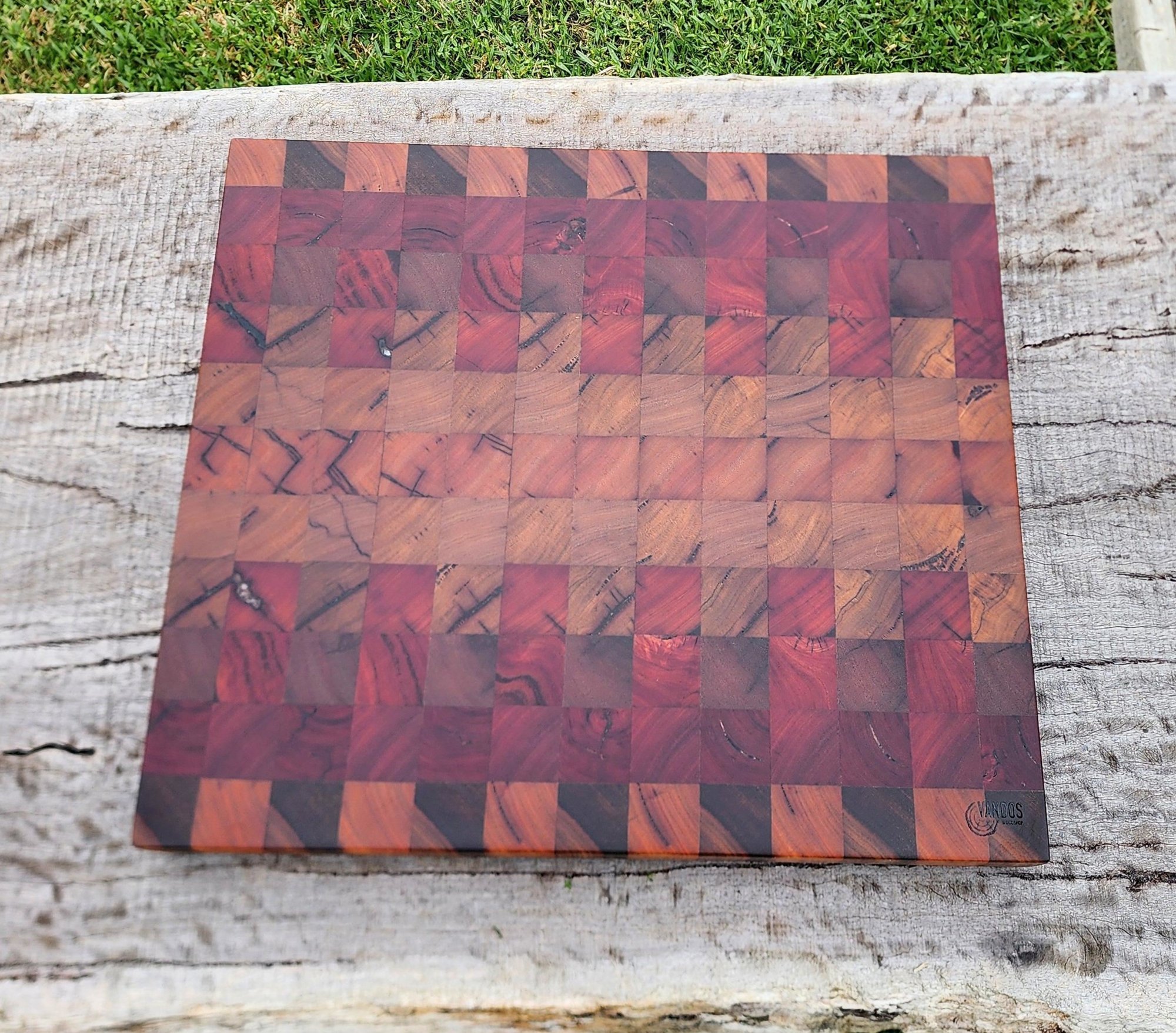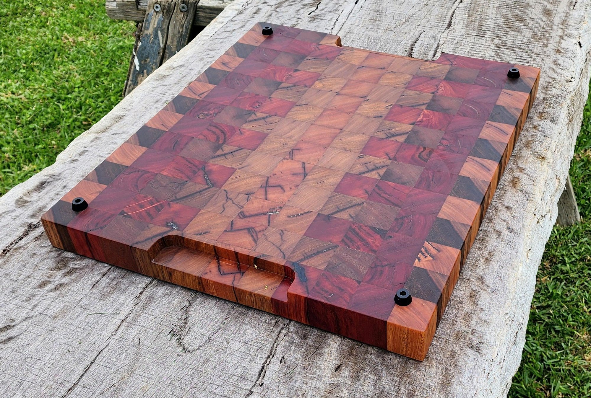 Full of character and built from reclaimed Spotted Gum, this solid end grain chopping board brings new life to old Australian hardwood that’s done its time in the frame of a building and is now ready for pride of place in your kitchen.