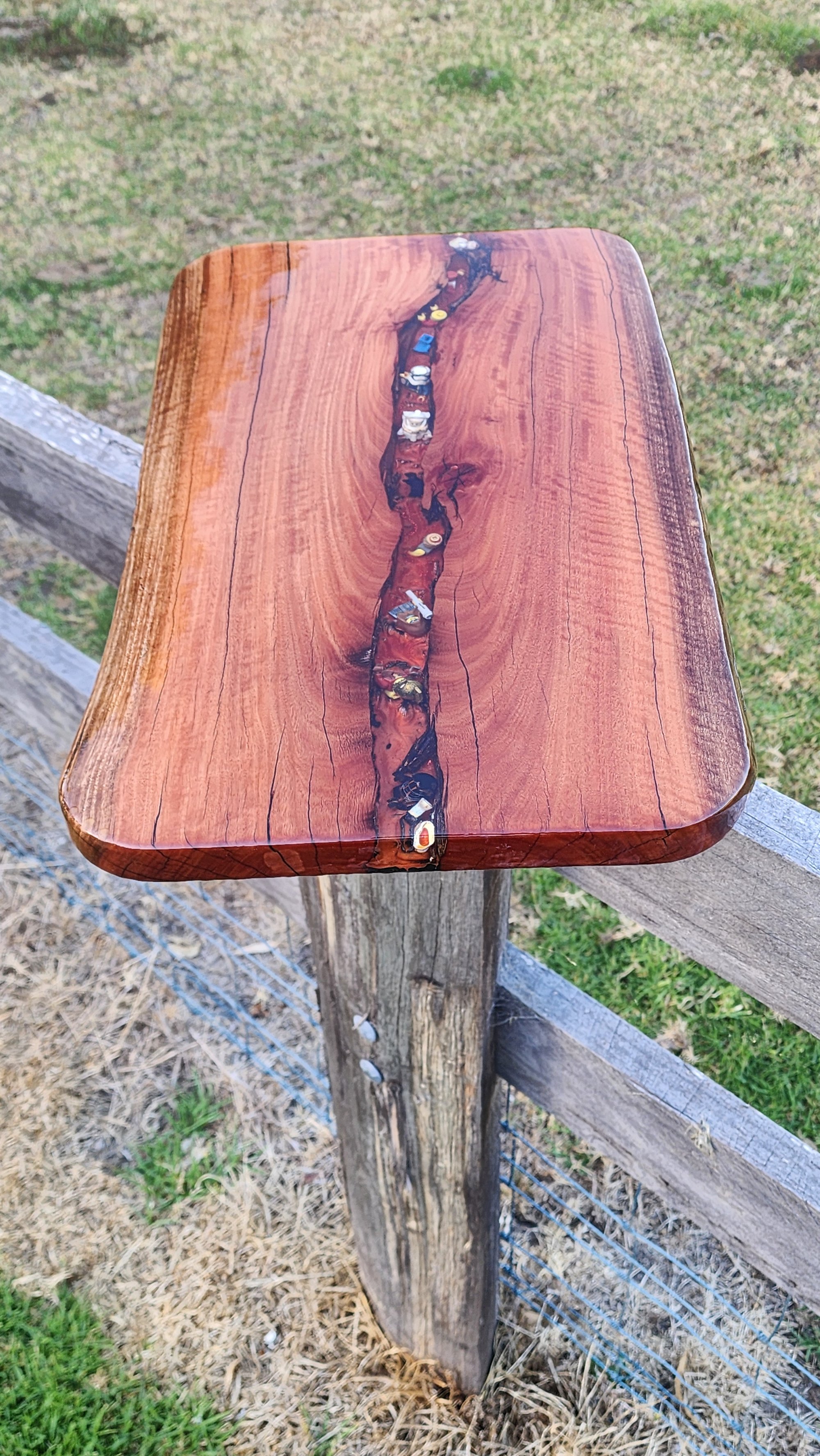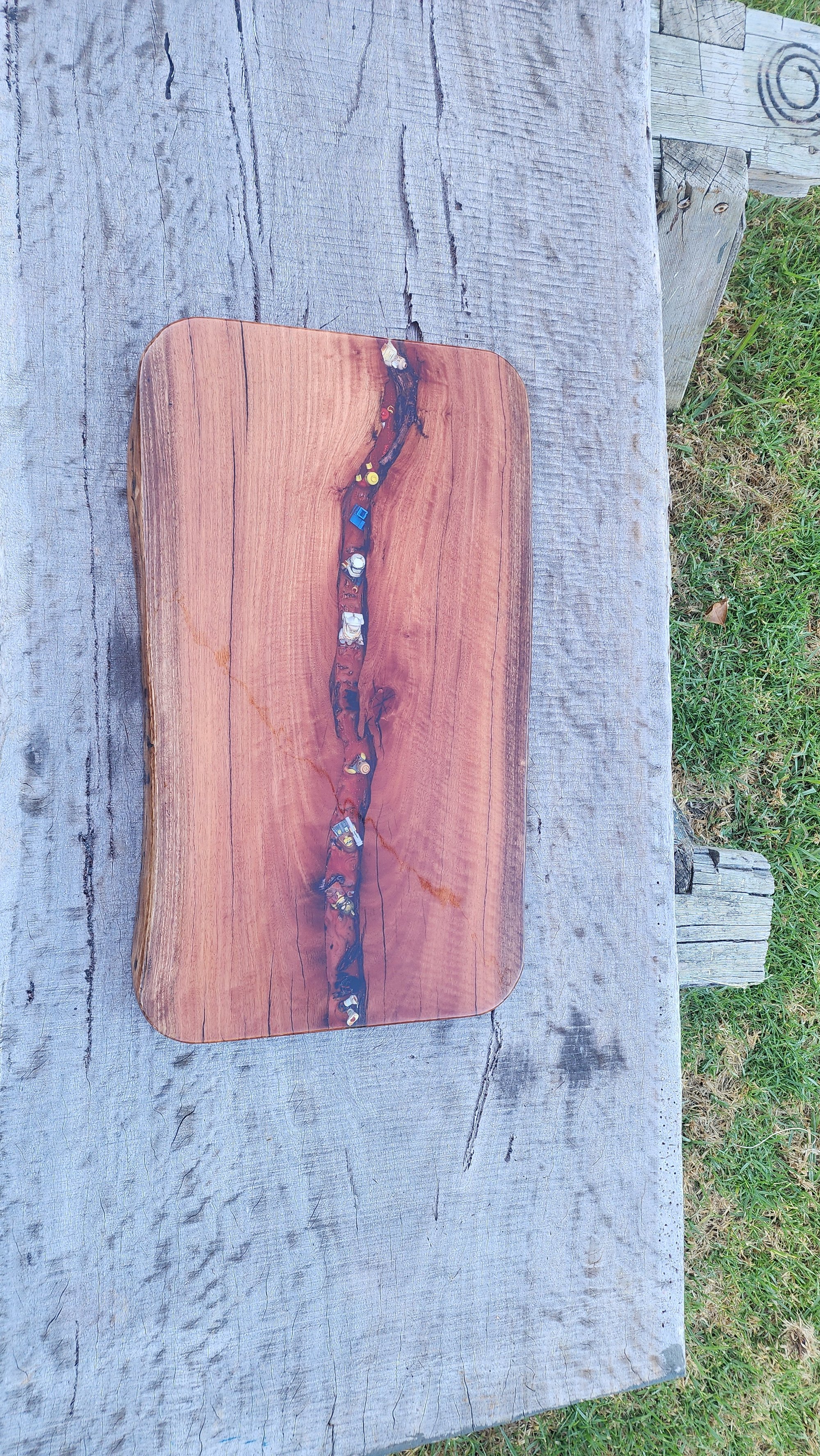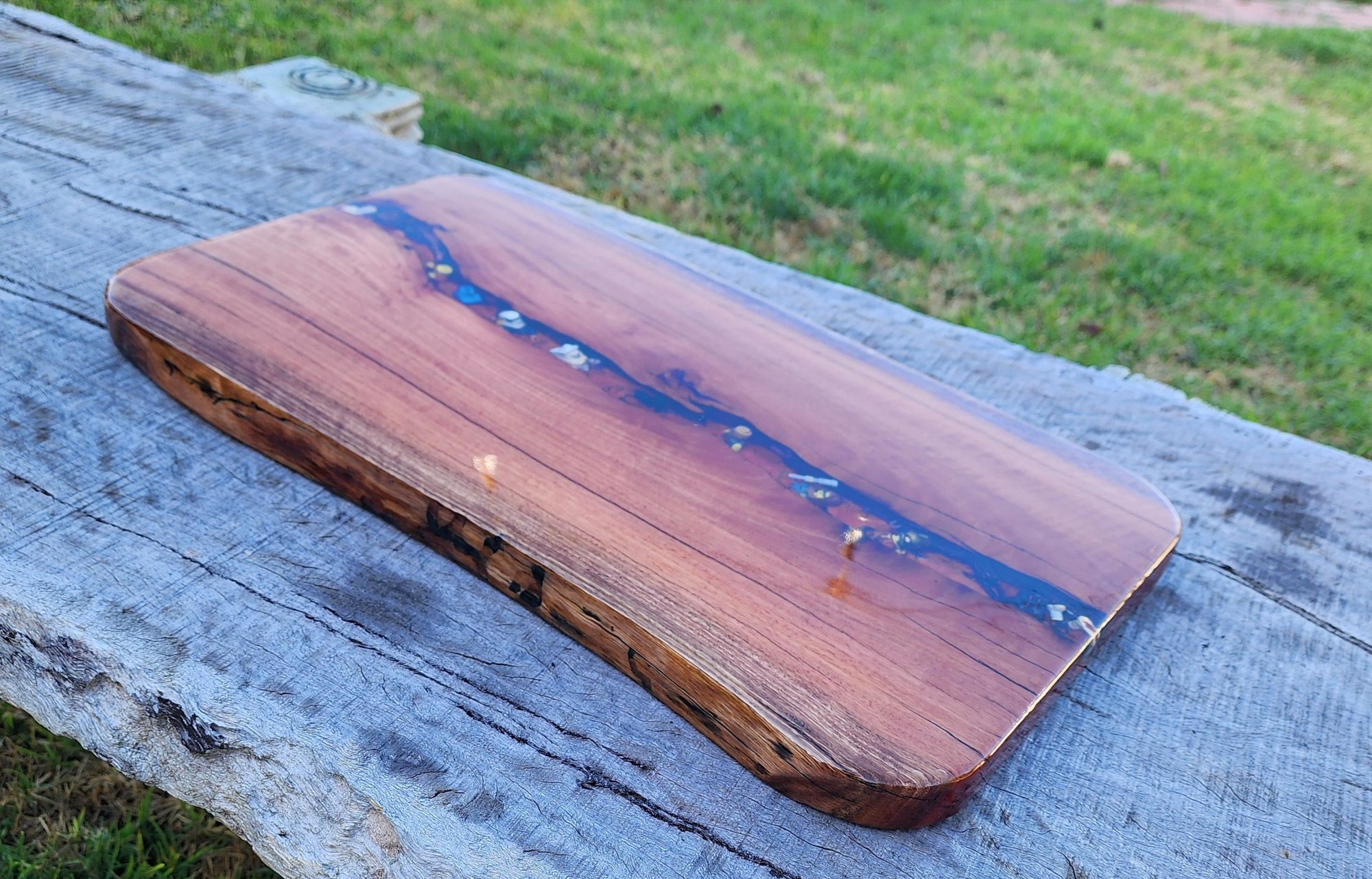 Crafted using premium resin from Health of Mind Art, the inlay creates incredible depth and movement, contrasting beautifully against the rich tones and durability of the Ironbark hardwood.