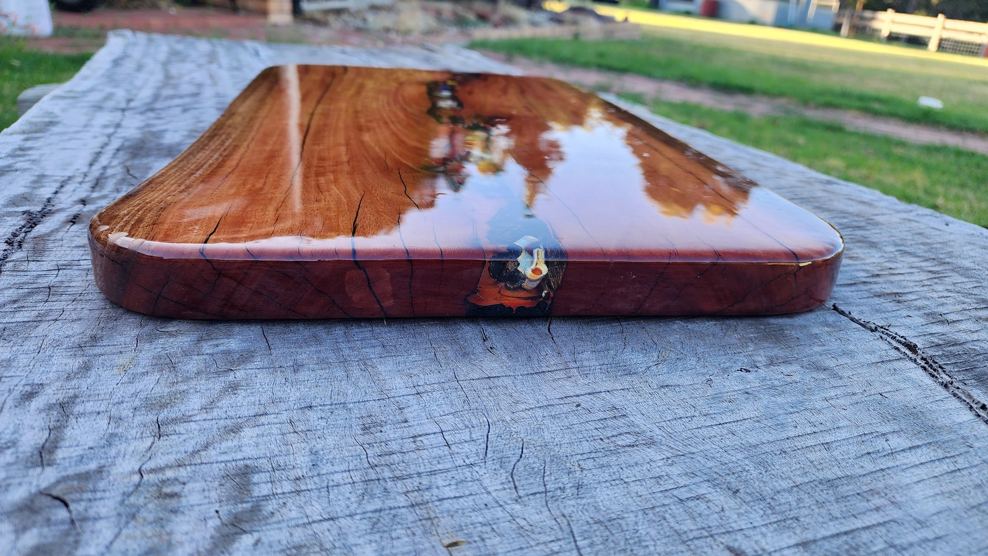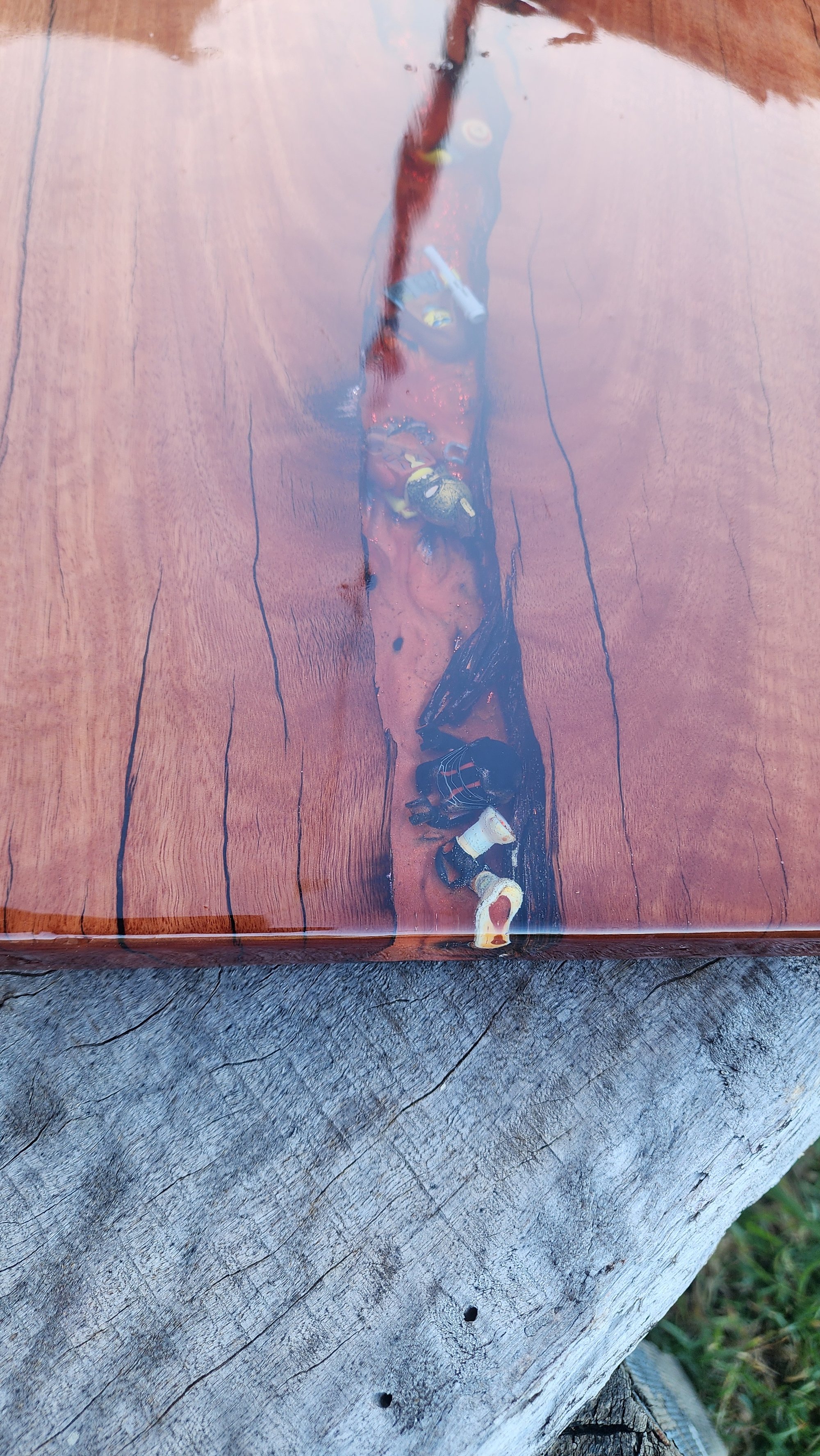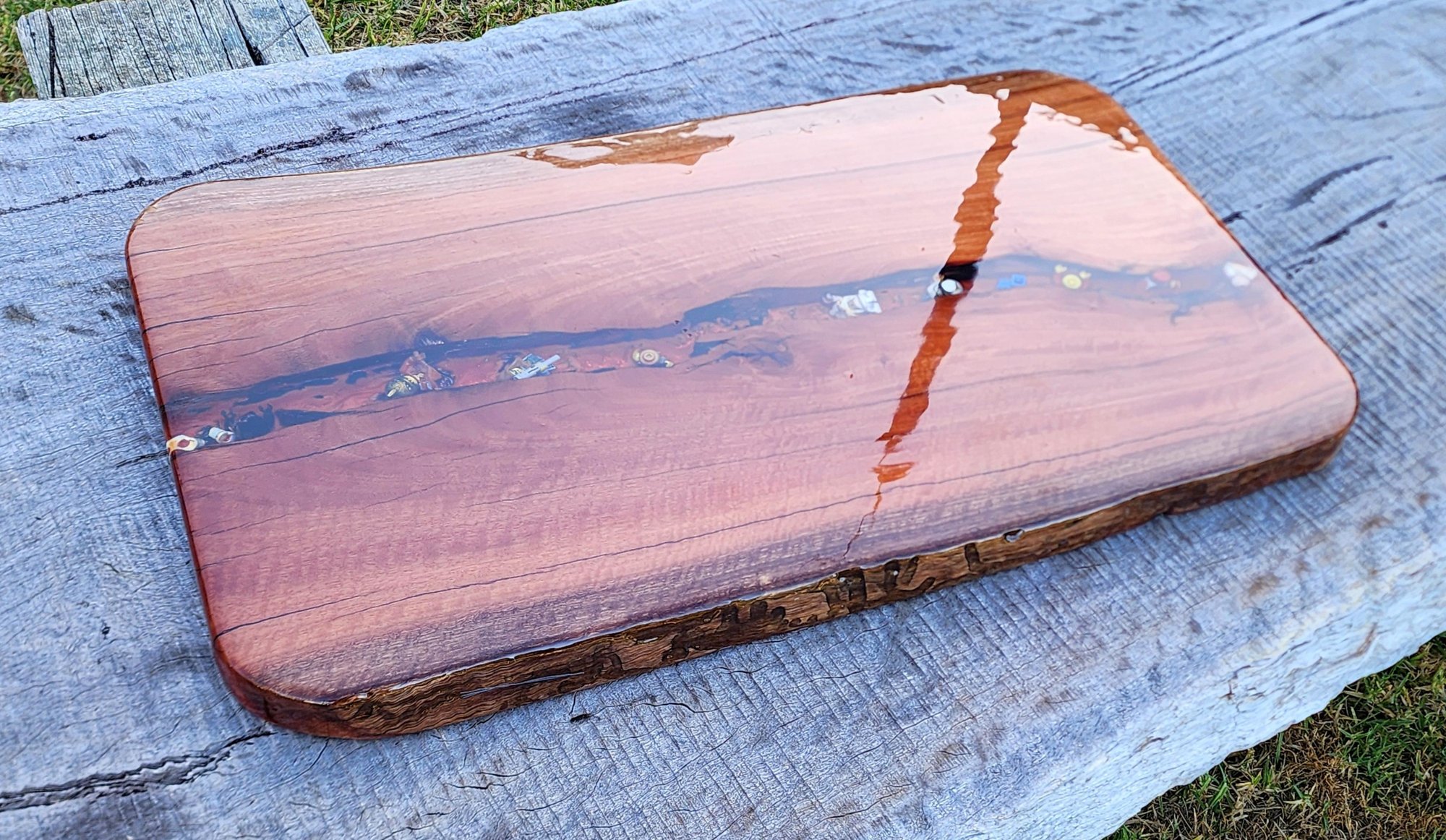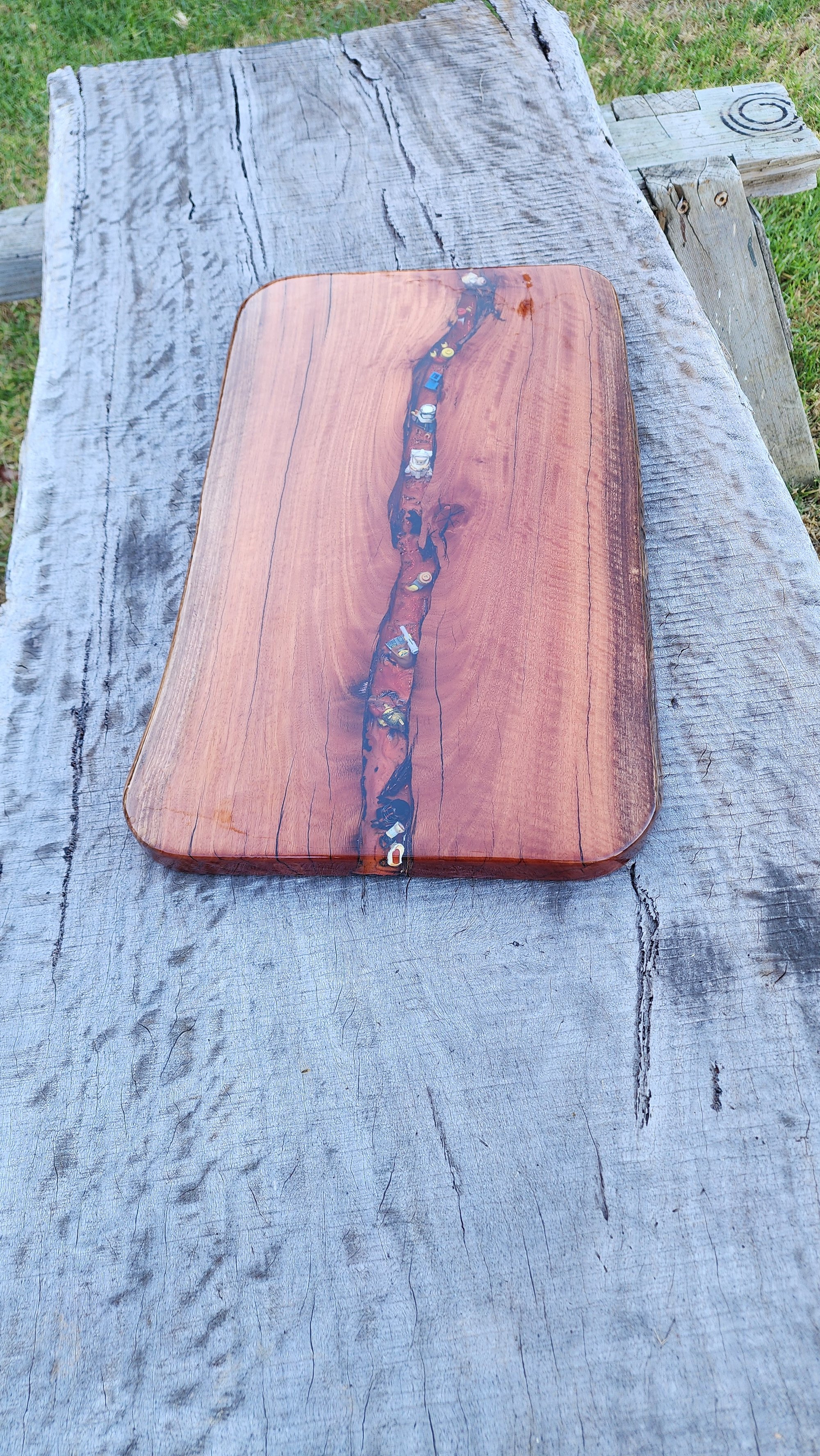 Crafted using premium resin from Health of Mind Art, the inlay creates incredible depth and movement, contrasting beautifully against the rich tones and durability of the Ironbark hardwood.