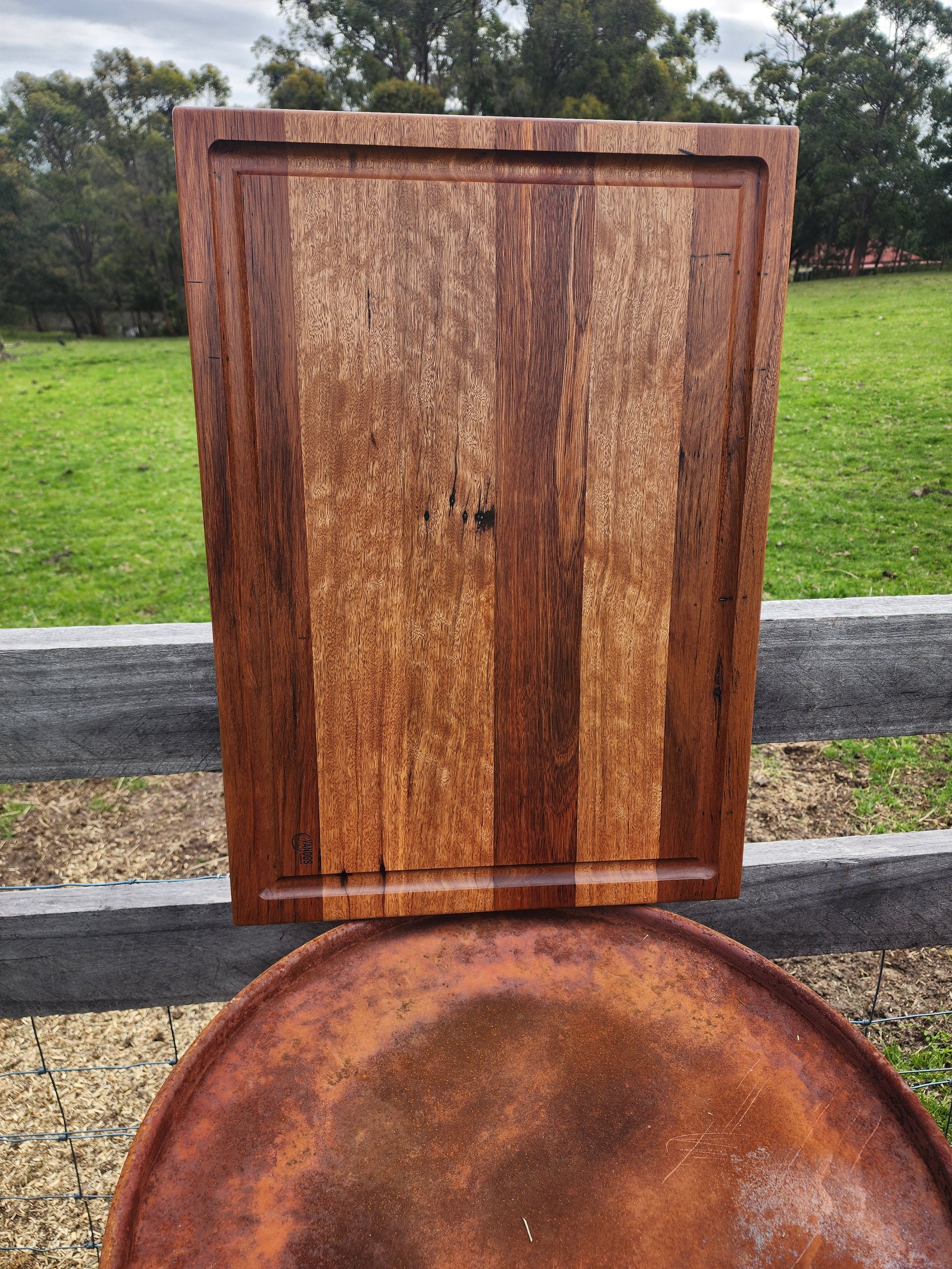Blackbutt is renowned for its strength, durability, and beautiful warm tone — qualities that only deepen with age. This board captures all of that character and more. With a deep, full-surround juice groove and generous working surface, it’s perfect for brisket, roasts, BBQ meats, and large food prep tasks.